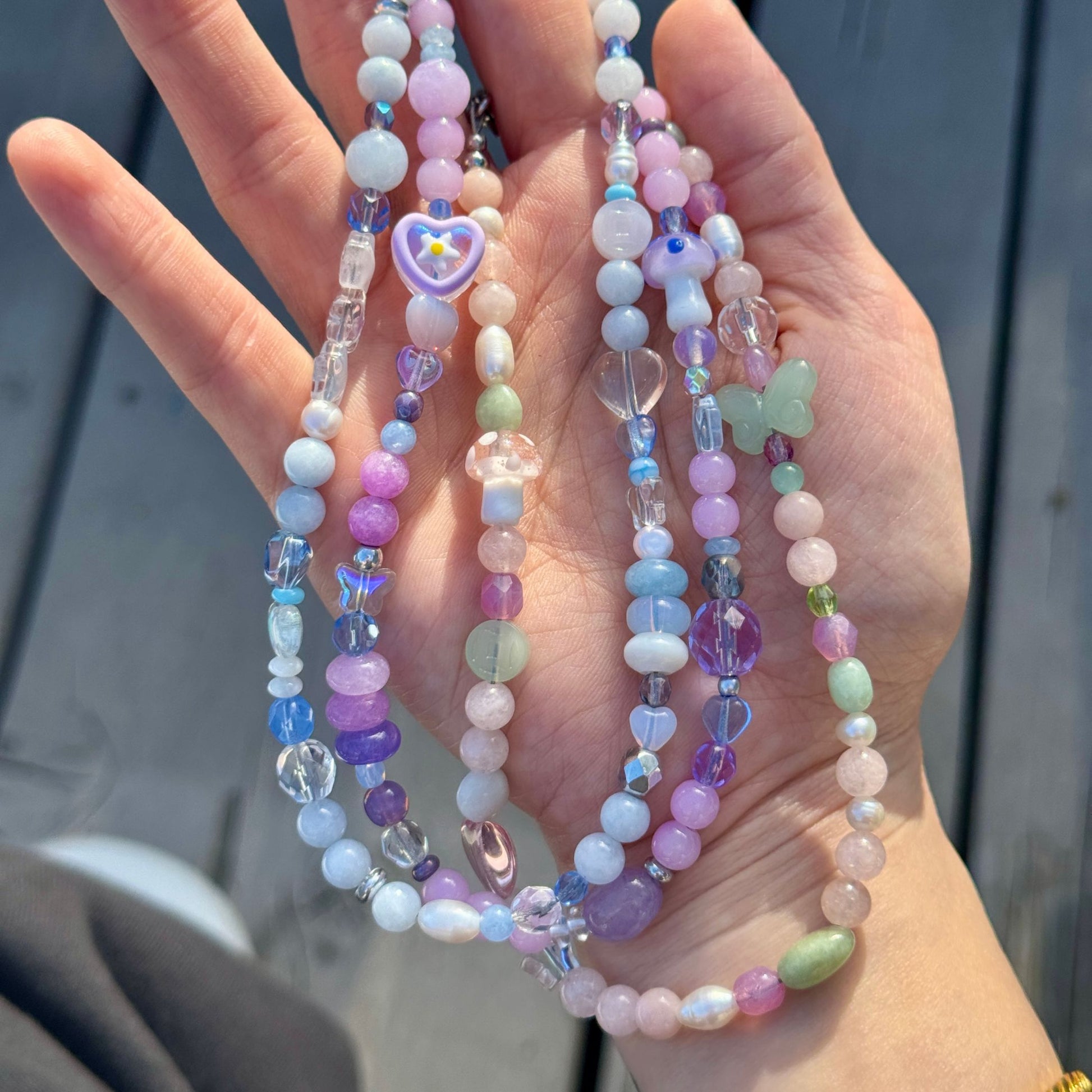 These are handmade pieces made with semi-precious stones, pearls, and glass beads - many of which are vintage or deadstock! That means your phone lanyard will be a completely unique piece (ie it may not look exactly like the photos here, but very similar). That also means that for some of these designs, once they’re sold out, they’re gone forever..!