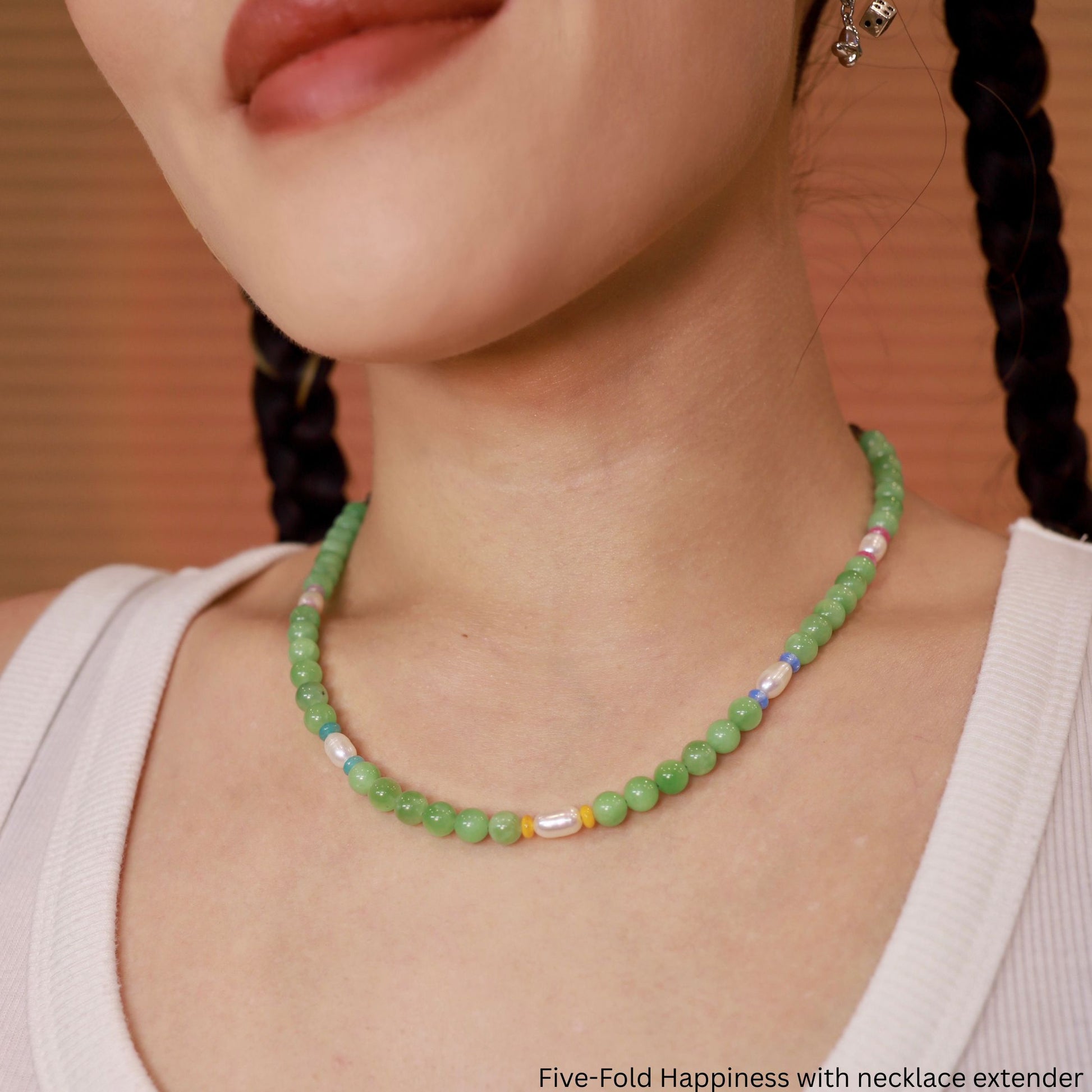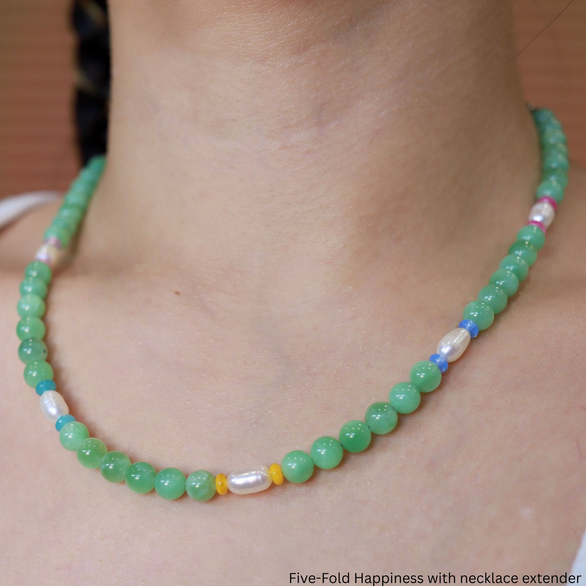 I like to think the 5 different colors of Czech glass beads represent the five-fold symbols of happiness: luck, prosperity, longevity, happiness, and wealth. This design just makes me plain happy & I hope it makes you happy too!