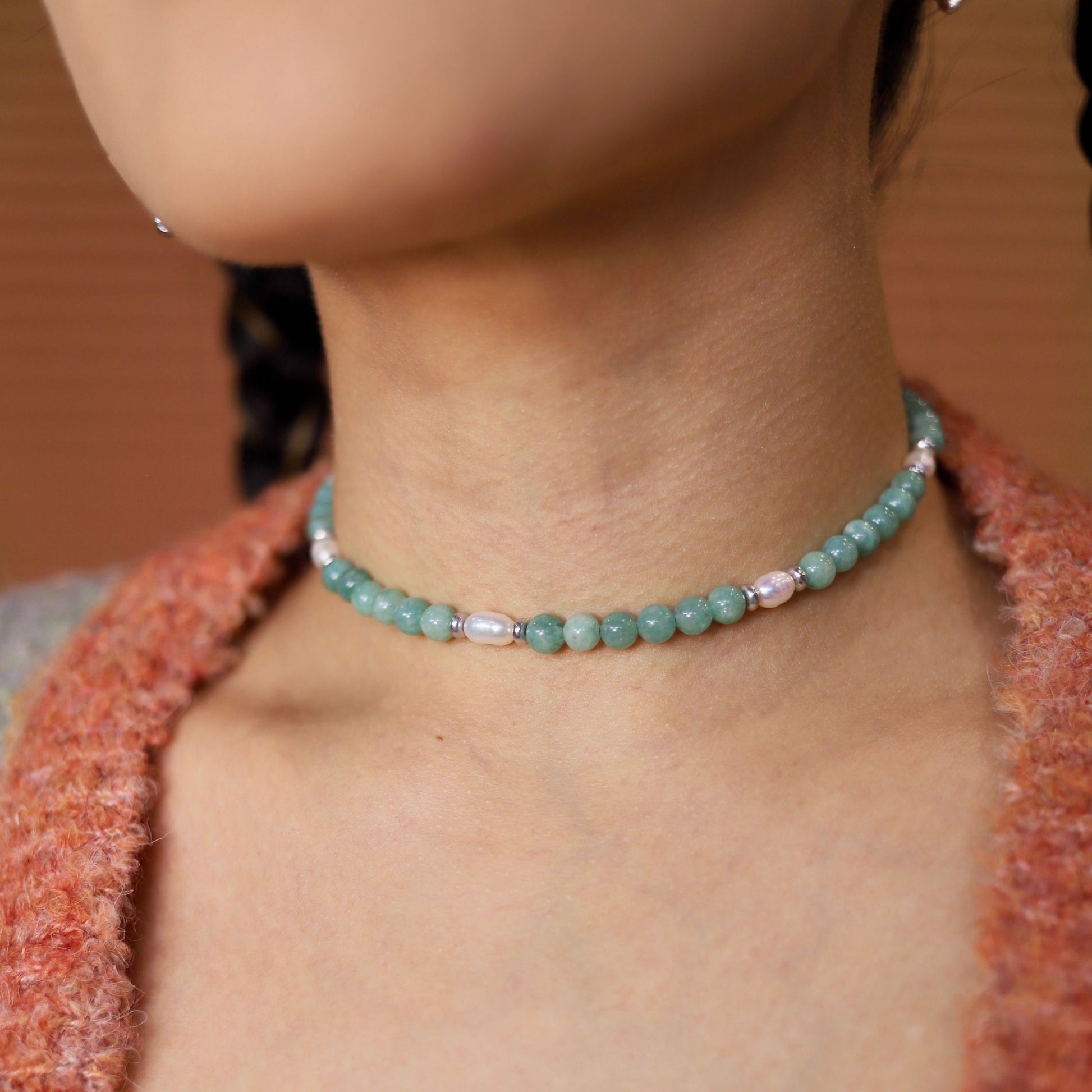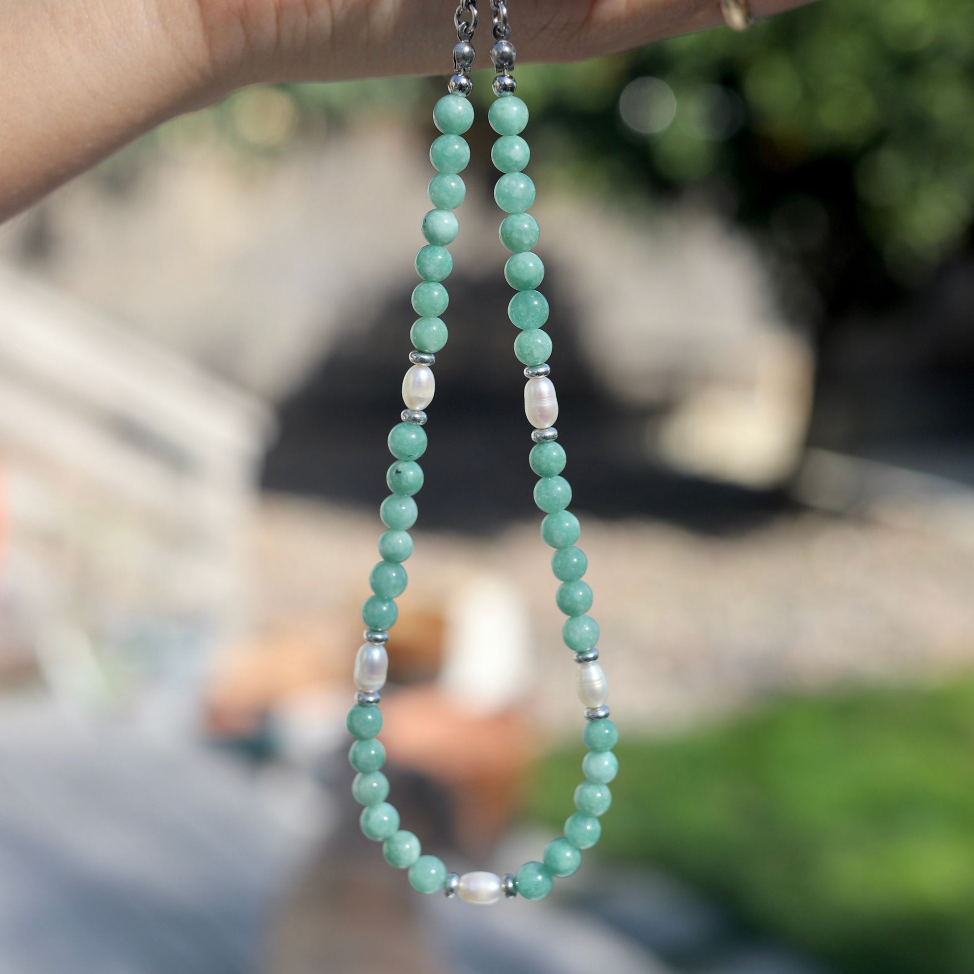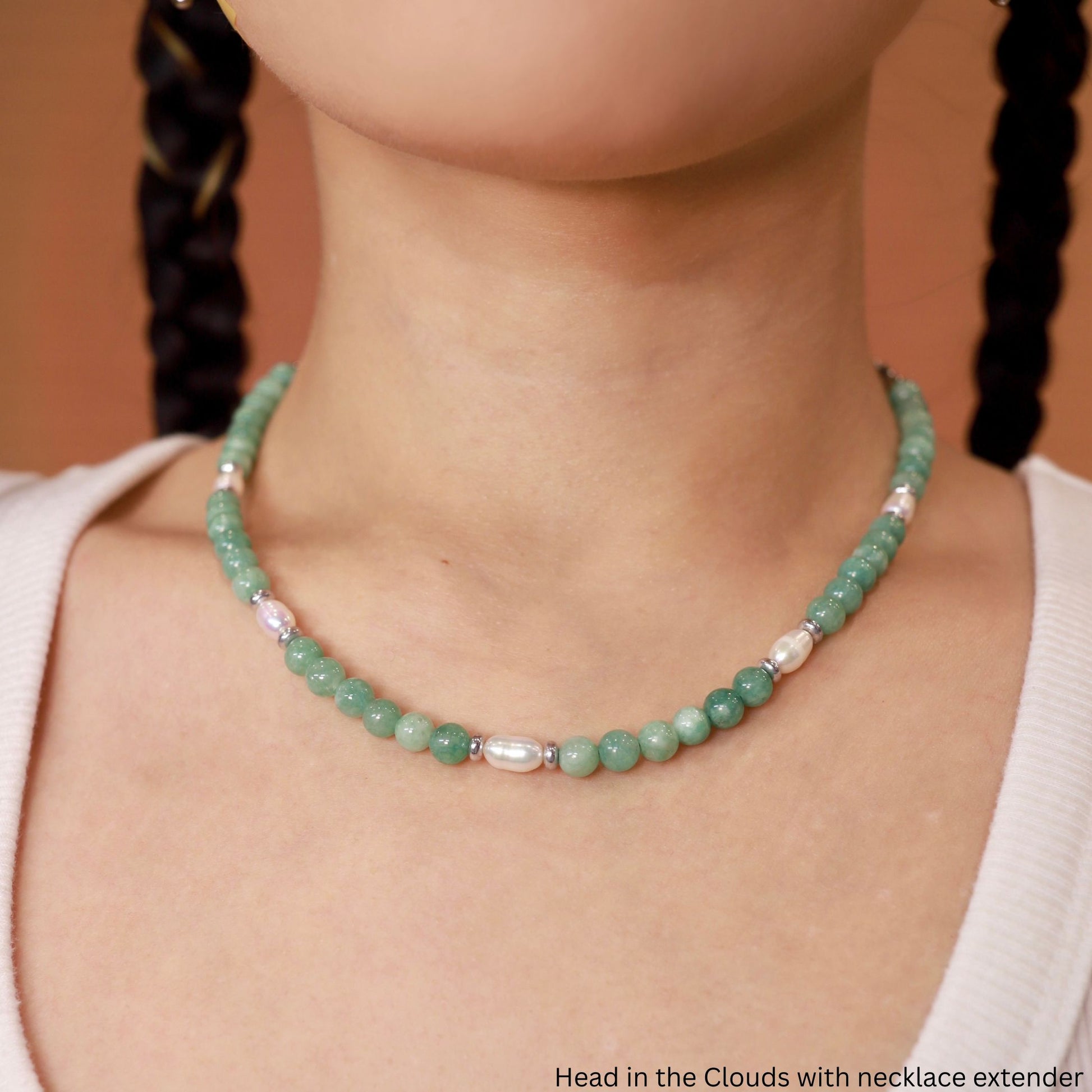 These cloudy cool jade beads are an absolute dream! I love how they almost look blue in some light. Paired with limited freshwater rice pearls and Czech glass rondelles… this one’s a no brainer. FYI, unlike the other two primarily jade pieces, I will be making more designs with this jade; but the pearls are gone for good so if you like this exact piece, this is your only chance!