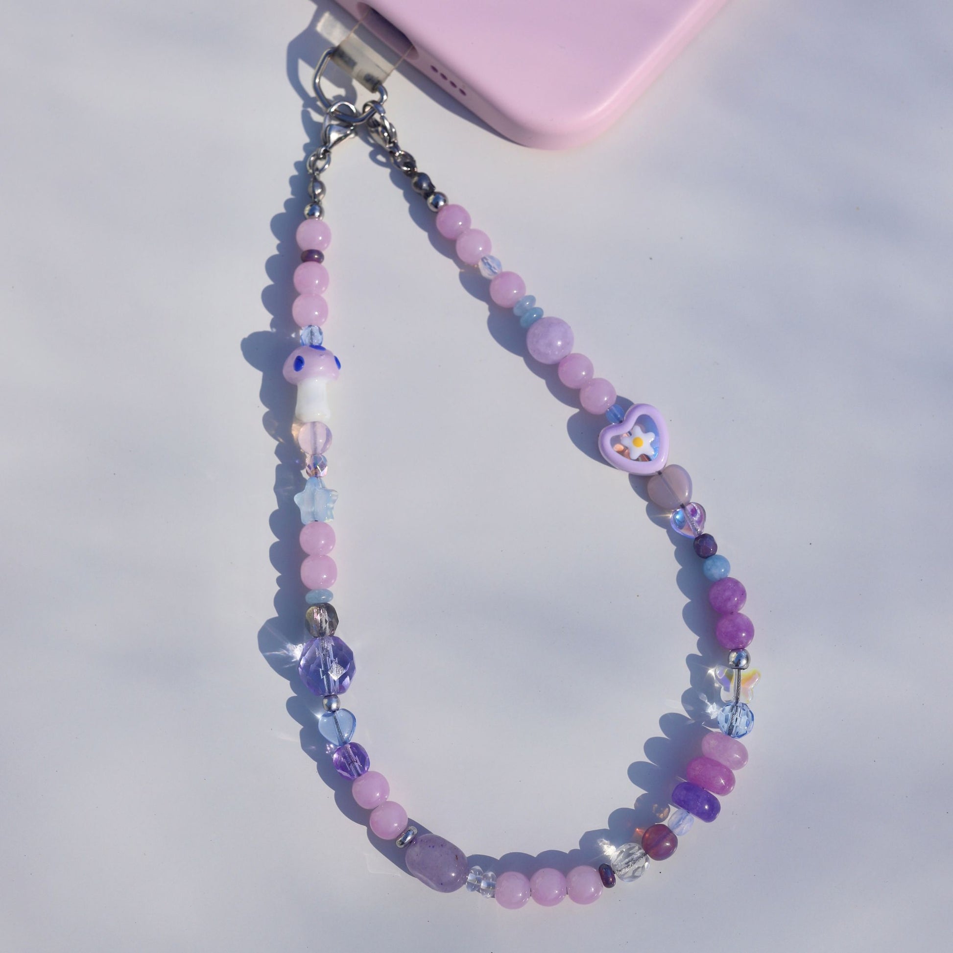 PLEASE READ BEFORE PURCHASING: (1) This is not your traditional plastic phone lanyard - it is comprised of semi-precious stones, pearls, and glass beads and should be treated like a piece of jewelry for your phone. If it gets crushed or hit, there is potential for beads to break. (2) Although the closures are strong, it should solely be used as a safety strap around your wrist while holding your phone; I do NOT recommend you use this as a wrist strap to swing your phone around on (it has been thoroughly tested for this over months and did not break but I still would not recommend this).